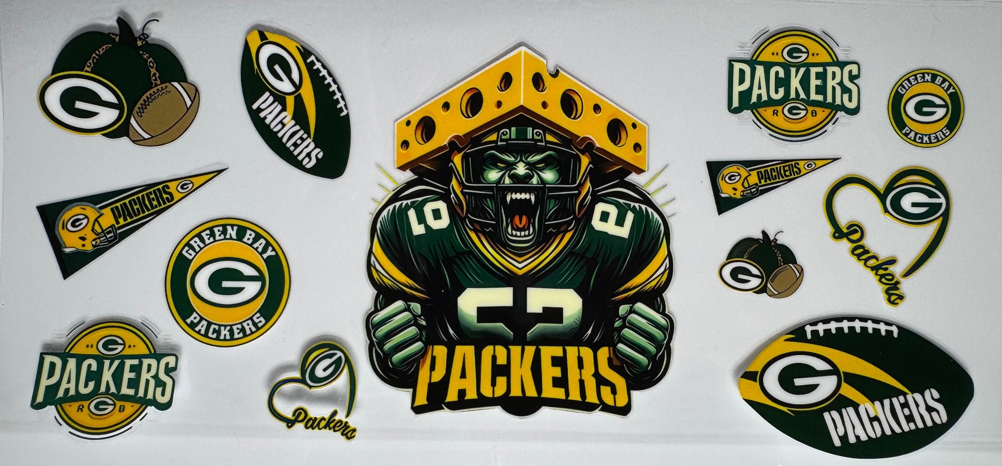 Enhance your game day experience with our Green Bay Football cup wrap. Designed to fit most standard sized cups, this wrap features the iconic Green Bay logo and colors. Show off your team spirit while keeping your drink cold and your hands dry. Perfect for tailgates or watching the game at home.